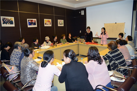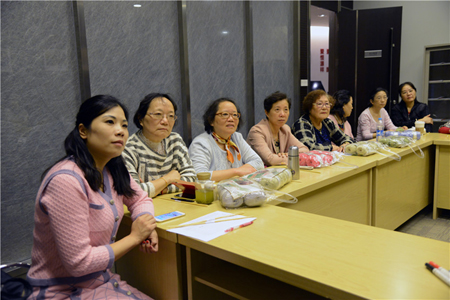 2015年10月28日下午恒源祥大厦二楼培训室气氛热闹,来自黄浦社区学院手工编织爱好者们早早的来到等待着上课,大伙们纷纷表示,自从上学期毕业后一直盼望着能早点开班学习,此次恒源祥特别邀请了上海市服饰学会手工编织专家、高级技师唐修凤老师授课,唐老师的编织课在2010年荣获“上海市社区教育特色课程”,也是老年大学交大分校、东华分校特聘编织讲师,学员们纷纷表示非常有这么好的学习环境、专业老师以及企业和社区共同支持,要珍惜上课机会,认真学习编织技艺,发扬编织文化。唐老师表扬了学员们的积极主动的学习兴致,承诺有信心会把这门课程好好的教授下去。