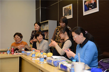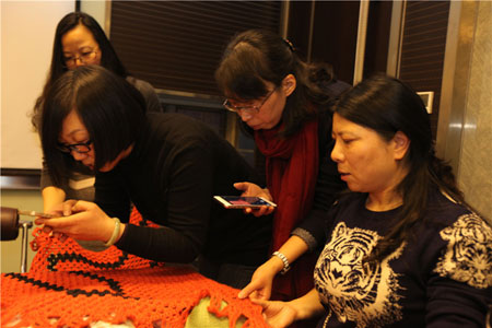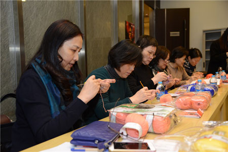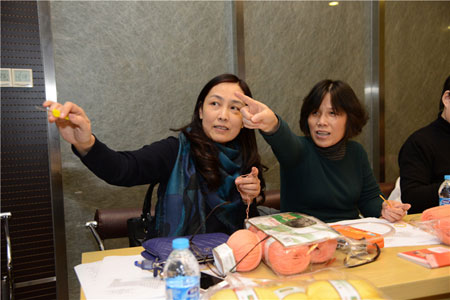 2015年12月8日、9日下午,恒源祥集团大楼里分别开展了两场别开生面的编织体验课堂。来自上海市检察院和黄浦区教育工会的编织爱好者们在组织者的带领下,来到“海派文化体验基地”恒源祥,体验“上海市非物质文化遗产”——绒线编织。上海市服饰学会编织专家、沪上知名编织大师唐修凤老师进行了“创意五角大披肩钩织”的讲座,为体验者们带来技艺与创意相结合的海派编织体验。