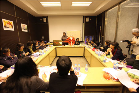 随后,恒源祥绒线产业市场经理杨维珍代表恒源祥绒线公司与大家分享了历年来成功的编织教学经验。恒源祥丰富的教育资源,多样的教育形式,领先的教育理念,让参与者们都对恒源祥在海派编织文化传承上所做的努力竖起了大拇指,