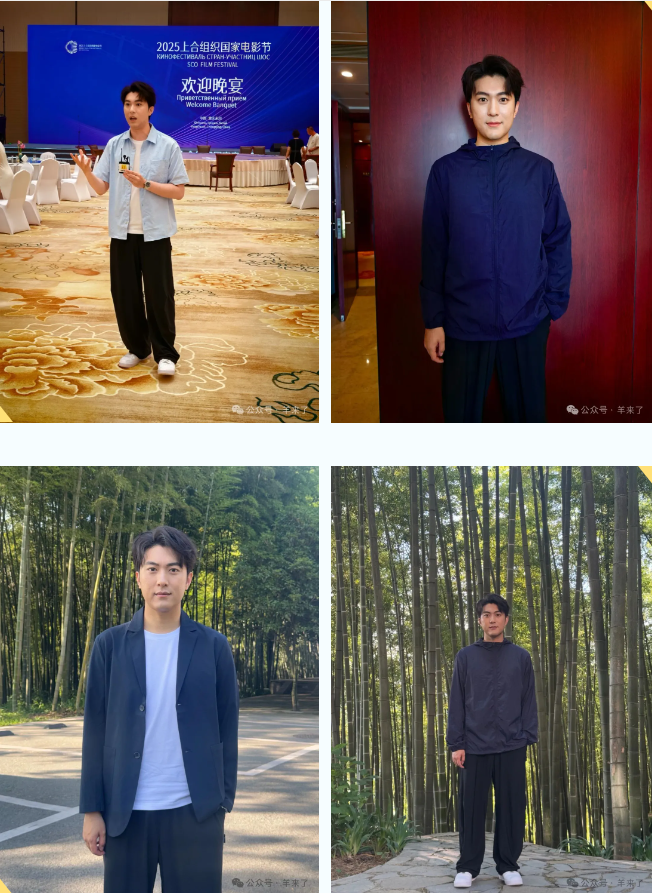恒源祥为主持人精心挑选:防晒外套/西服、冰丝短袖/衬衫及桑蚕丝休闲裤,以棉桑混纺面料淬炼冰凉亲肤质感;经匠心层叠锻造,无缝适配重庆湿热气候,更征服室内影棚至户外片场的全天候拍摄强度。版型与面料的双重精研,织就海派美学平衡温度与风度的时尚新范式。