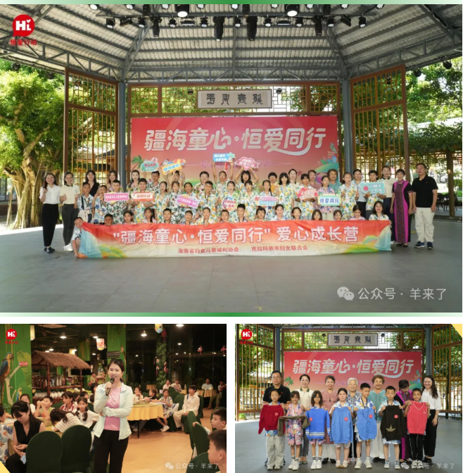 7月7日-13日,“疆海童心・恒爱同行”爱心成长营活动在海南举办。来自新疆克拉玛依的36名儿童参加此次主题成长营。活动由中国儿童少年基金会、海南省妇女联合会、恒源祥(集团)有限公司指导,并得到了海南火山口公园有限公司、儋州嘉禾农业开发有限公司、海南热带野生动植物园、三亚市蓝丝带海洋保护协会、文昌航天超算中心、五指山市水满乡毛纳村、五指山黎苗童声合唱团等单位爱心支持,恒源祥集团组织发展中心公益慈善部应邀出席活动。