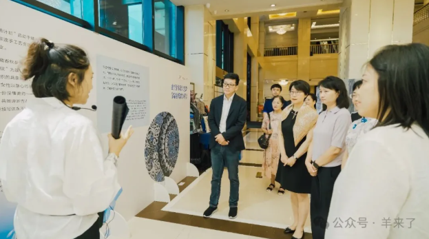 在前往黔东南深入了解在地民族非遗前,恒源祥团队还参与了在贵阳举行的“锦绣万物”贵州锦绣计划成果公益巡展。该展由贵州省妇儿发展基金会主办,集中展示了自2013年“锦绣计划”实施以来,将贵州传统指尖技艺转化为指尖经济的丰硕成果。陈忠伟董事长作为重要嘉宾出席,与贵州省妇联、贵州省广播电视台等领导共同见证了贵州妇女特色手工产业的成就。巡展现场,代表全省各地特色非遗分布的锦绣地图、以及涵盖刺绣、蜡染、民族服饰等品类的特色展品,全方位呈现了贵州民族文化的深厚底蕴与创新活力,为恒源祥后续的文化融合探索提供了更广阔的视野和更清晰的方向。