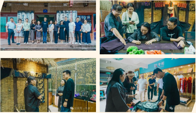 随后应黔东南州妇联邀请,恒源祥团队一行前往凯里市民族非遗创业基地,实地参观“天才妈妈”刘英主理的苗绣梦想工坊、“贵州村T”项目主理人杨春林打造的国潮品牌“古阿新”,以及欧东花民族服饰博物馆,深入感受黔东南地区丰富的民族文化积淀与非遗技艺传承。
