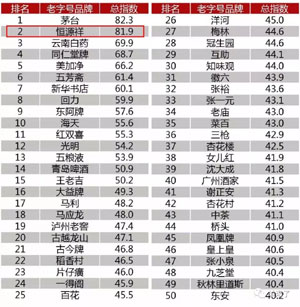 在上海市商委指导下,阿里研究院联合北京大学光华管理学院王锐教授共同完成的《中华老字号品牌发展指数》研究报告前不久刚刚发布,经典品牌发展指数TOP100榜单(2018)新鲜出炉。恒源祥以总指数81.9,仅低于第一名茅台0.4,高于第三名云南白药12,将榜眼收获囊中。