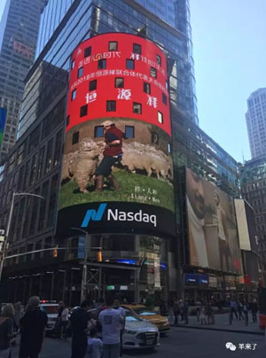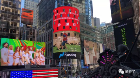 美东时间2018年9月30日的11:40和19:40(北京时间9月30日晚23:40和10月1日早上7:00)两个黄金时间段,家喻户晓的“恒源祥 羊羊羊” 经典广告继今年4月19日首次登陆后,再次跃上“世界第一屏”——美国纽约时代广场纳斯达克大屏,向世界展示恒源祥品牌的形象和实力,深情献礼中华人民共和国成立69周年。