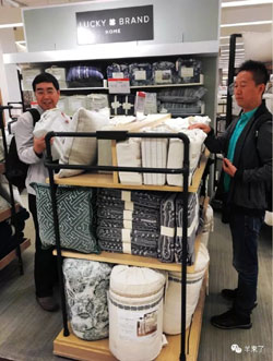在院校学习和观摩发布会后,团队成员兵分两路,针对性地开展参观学习。家纺一行在家纺产业总经理强建春带领下参观了JCPENNEY、ABC HOME、Pottery Barn、Crate&Barrel等美国知名家纺连锁店铺,对美式家纺风格有了更深的认识,也获得了对家纺产品开发新的启发。