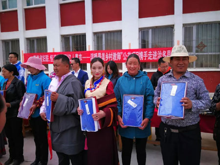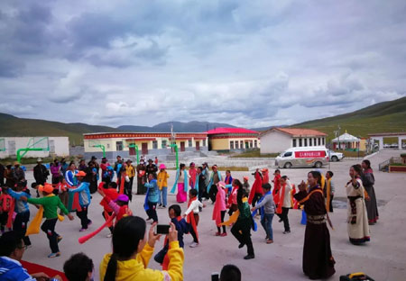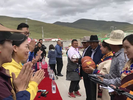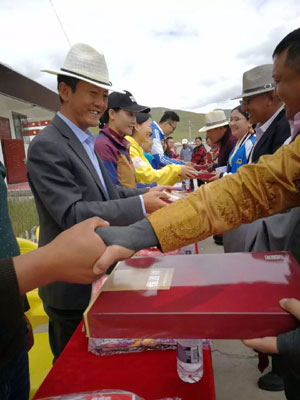 立新乡寄宿小学的老师代表才仁多杰发言,对恒源祥的善举表示非常感谢。