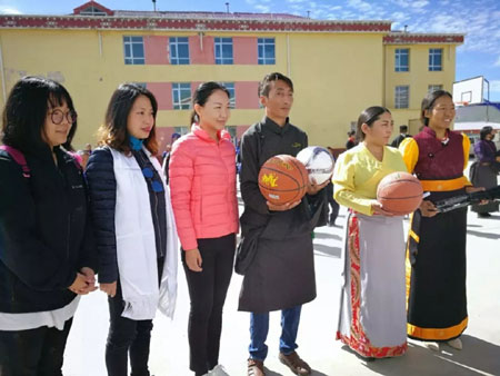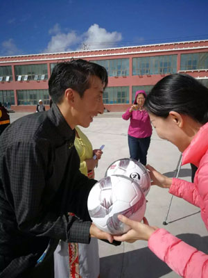 为了让老师与孩子们的业余能有更多的娱乐活动,项目组代表向校方赠送球类文体用品。