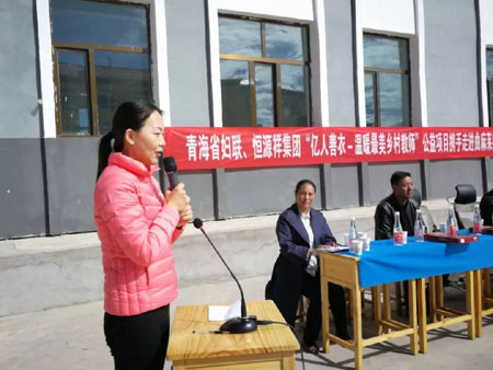 青海省妇联家庭和儿童工作部部长吴倩;玉树州妇联主席白玛求吉、副主席马弘蕾;曲麻莱县委常委、县委副书记李健,曲麻莱县政府副县长、教育局局长尼玛扎西,曲麻莱县教工委主任欧周,曲麻莱县妇联主席桑措与恒源祥“亿人善衣”项目组共同参与了本次活动。