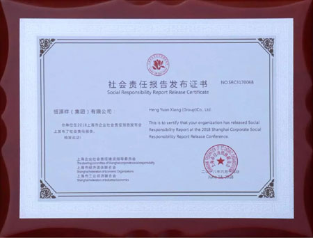 6月14日,由上海市经济团体联合会主办的“2018上海市企业社会责任报告发布会”在花园坊节能环保产业园举行。大会现场,恒源祥正式发布《恒源祥集团2017社会责任报告》,这是恒源祥自2011年始,连续发布的第八份社会责任报告,也是在此权威平台上连续发布的第七份报告。