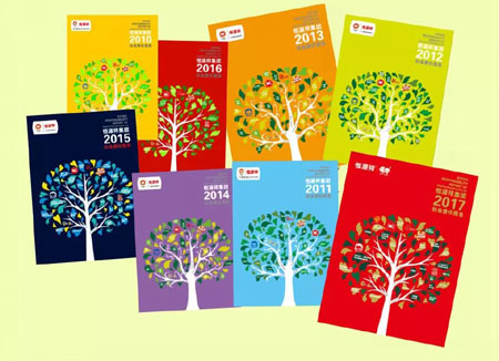 2011年至2018年,恒源祥发布的八份社会责任报告封面