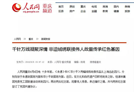 恰逢改革开放40周年,也正值6月9日我国第二个“文化和自然遗产日”即将到来之际,恒源祥与邓小平纪念馆方约定将用更加独特的艺术手法、更多的绒绣传世之作展现改革开放总设计师光辉形象,传承非遗文化、红色基因,致敬新时代!