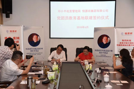 6月5日,“爱党 爱国爱恒源祥”2018恒源祥联合体党工团联建系列活动第六站来到四川广安邓小平纪念馆。陈总一行人向纪念广场中的邓小平铜像进献花篮,并认真参观了邓小平纪念馆和故居。邓小平故里管理局钱奇局长,杨顺高副局长,故居陈列馆彭备军馆长等领导热情接待,并与恒源祥代表进行亲切会谈。顾书记代表集团党委同纪念馆签订了党团员教育基地的共建协议。