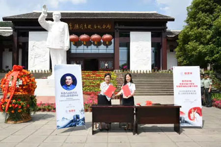 随后,举行党团员教育基地共建签约揭牌仪式,陈总代表集团表达了对朱德总司令的缅怀敬仰之情,他表示恒源祥将以开展党团员教育活动、互相交流学习、公益助贫帮困等实际行动感恩革命先辈,回报社会。