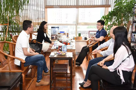 5月31日,马云公益基金会秘书长于秀红、马云乡村教师计划项目经理李天祝来访恒源祥集团,集团总经理陈忠伟,商超产业总经理穆震涛、总经理助理刘静茹热情接待了来访嘉宾。