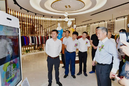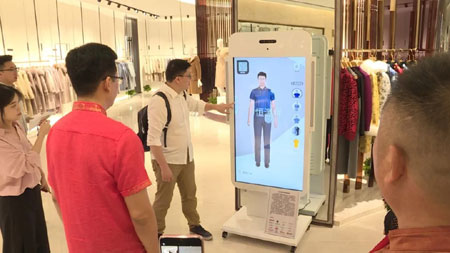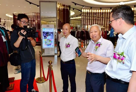 参观过程中,刘董、陈总等嘉宾和参会代表还饶有兴致地试用了3D智能魔镜,这套设备能通过智能体感装置和全高清摄像头实时捕捉客户影像,即时建立人体3D模型,并将服装的3D模型与人体模型进行精准匹配,实现服装与顾客的完美融合。恒源祥服饰拟在部分终端引进该套设备,以增强消费者线上线下的购物体验,同时通过大数据的挖掘及应用,实现远程服装定制,探索全新的商业模式。