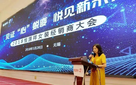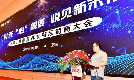 新的征程、新的开始、新的机遇、新的挑战,5月28日,2018年恒源祥女装经销商大会在无锡召开,恒源祥集团总经理陈忠伟,集团党委副书记顾红蕾,集团副总经理康强、陈晨,无锡藕塘绒线厂厂长陈伯清,恒源祥服饰产业总经理黄珏仁,无锡恒基服饰有限公司总经理陈晓明,恒源祥女装经销商,工厂代表齐聚一堂,用新的眼光审视现在、用新的目标定位未来,在更新观念中创新发展,共同见证恒源祥女装的“心”蜕变,一起“悦”见恒源祥女装的新未来。