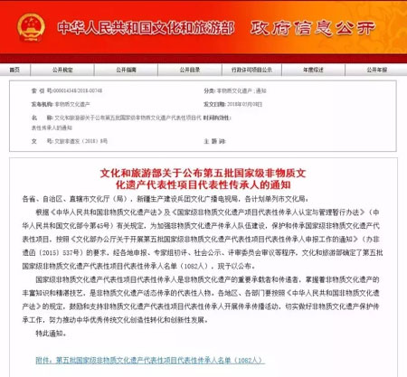 据文化和旅游部的信息公示,经各地申报、专家组初评、社会公示、评审委员会审议等程序,1082人确定为第五批国家级非物质文化遗产代表性项目代表性传承人。其中上海有26人上榜,海派绒绣代表性传承人、恒源祥绒绣原创工作室首席绒绣工艺师李蔷榜上有名。