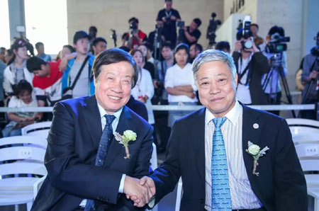 中国体育集邮与收藏协会主席吴振绵和刘瑞旗董事长合影留念