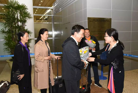 4月23日晚,由可可西里管理局副局长、森林公安局副局长罗延海带队的第三批来沪体检的可可西里战士抵达浦东机场,集团党委副书记顾红蕾一行为战士们接机并送上美丽的鲜花,欢迎战士们“回家”。