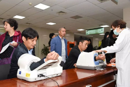 4月24日上午,在“保护可可可西里守护者联盟”关爱下,可可西西战士一行12人在上海交通大学医学院附属仁济医院接受专业的健康体检。仁济医院精神文明办主任袁蕙芸和副主任閤谦为可可西里战士一行的到来提前做好了精心准备,在她们和体检中心的医师们的帮助下,战士们顺利地完成各项身体检查。由于战士们常年在地处青藏高原腹地,平均海拔超过4600米的高寒地带,在干燥寒冷和严重缺氧的环境,打击盗猎、盗采,救助野生动物,他们中的大多数人落下关节炎、风湿病、胃病等一身的病痛。仁济医院体检中心的医师们在为战士做检查的同时,也针对性给出了健康指导意见。