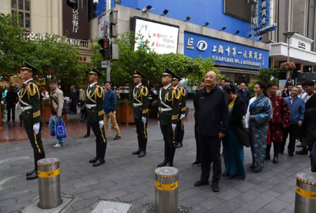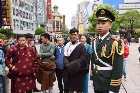 4月24日下午,战士一行来到南京路步行街道,“保护可可西里守护者联盟”的成员单位——武警上海总队执勤四支队十中队的代表向战士们介绍了平时在南京路执勤巡逻的工作情况,联盟单位的相互了解,有效增进了双方“共同守护美丽家园”的信念。随后双方共同前往上海市历史博物馆进行参观,饱览了上海上下6000年的历史轨迹,直至 1949 年上海解放。