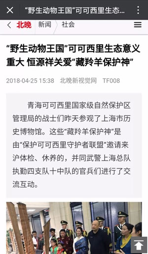 北晚新视觉网:“野生动物王国”可可西里生态意义重大 恒源祥关爱“藏羚羊保护神”