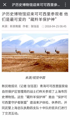 新民晚报:沪历史博物馆迎来可可西里参观者 他们是最可爱的“藏羚羊保护神”