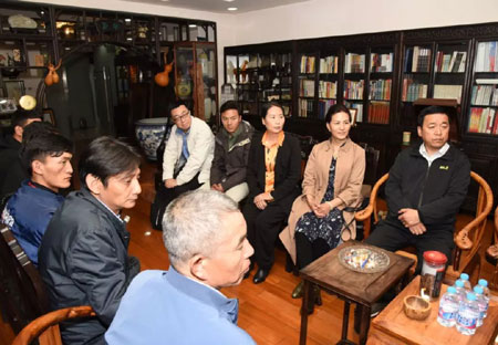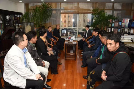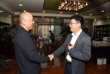 在战士一行观看《恒源祥2017十大新闻》后,集团总经理陈忠伟与战士一行进行了会谈。陈总在关心战士们的身体情况后,对可可西里在成为世界自然遗产后,未来如何发展等问题,与罗延海副局长交流了看法。