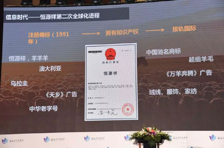 陈总以“从中国品牌到世界品牌的去国界化”为题进行发言,向在场讲嘉宾们述了恒源祥走过工业时代、信息时代、互联网时代,并且正向人工智能时代的全球化经营理念迈进的过程,并分享了恒源祥关于探索全球广告营销新模式的战略规划。