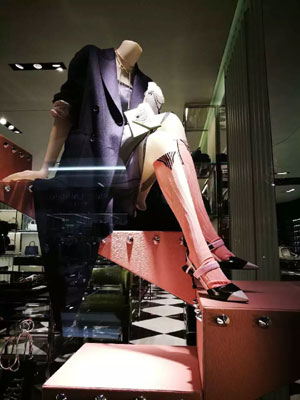 精致的商品陈列在米兰的大街小巷的商店橱窗。意大利人讲究穿着打扮,在服饰上追求标新立异,他们出席正式场合很注意衣着的得体整齐与否。