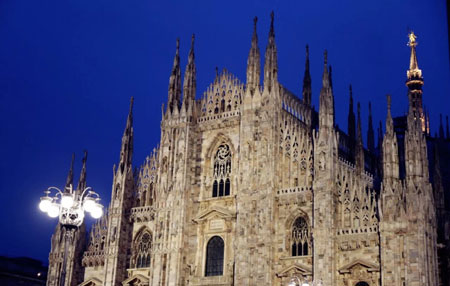 在灯光的点缀与辉映下,愈夜愈妖娆迷人的米兰。