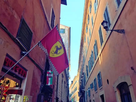 罗马城里法拉利的标志。被称为“永恒的都城”——罗马,是台伯河畔的七座山丘发展起来的。罗马城在王政时代、共和时代、帝国时代、意大利王国时代乃至在现代,名称、地点一直不变,和罗慕路斯时代依旧一致。这里作为历史的舞台,上演了各种各样的连续剧。