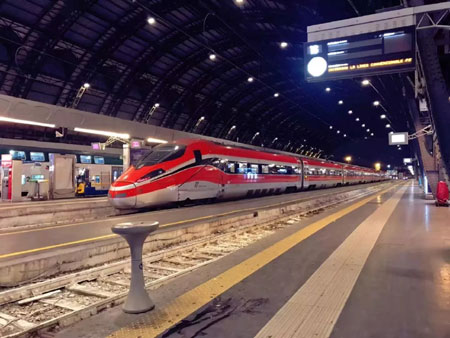 上图为意大利的高速列车——欧洲之星。意大利人时间观念和集体观念不强,工作效率不高,这与他们爱交际,灵活、注重自由、以人为本及机会主义有关。在米兰,守时意味着迟到20分钟,在罗马是迟到半小时,而在南部则是迟到45分钟。