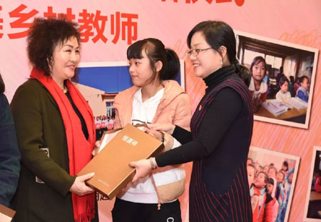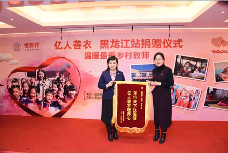 黑龙江省妇联回赠锦旗“羊行天下送温暖 亿人善衣暖师心”以表诚挚的感谢,顾红蕾书记代表集团接受锦旗。