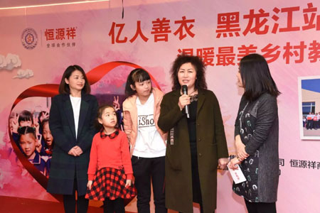 白主席对恒源祥集团多年来积极支持与参与社会公益事业做出了高度的肯定和感谢,她表示,“亿人善衣”紧扣“公益+大爱”社会话题主旋律,充分体现了企业关心乡村教师及困境儿童的善举和勇于承担社会责任的胸怀,希望未来能够与“亿人善衣”和“恒爱行动”等公益慈善项目持续开展合作。