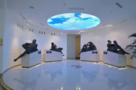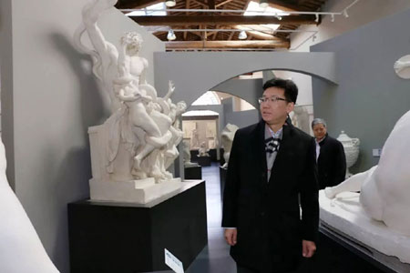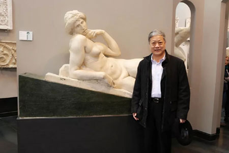 刘董在馆藏的米开朗基罗惊世名作——《昼》、《夜》、《晨》、《暮》作品石膏稿旁留影