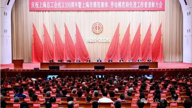 5月9日下午,“庆祝上海总工会成立100周年暨上海市模范集体、劳动模范和先进工作者表彰大会”在世博中心隆重举行。