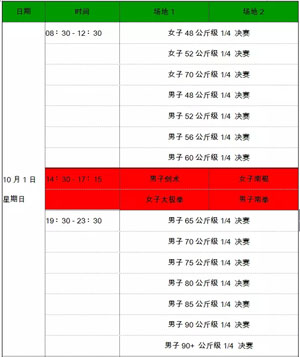 【2017年武术世锦赛的竞赛日程】
