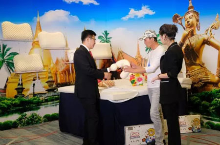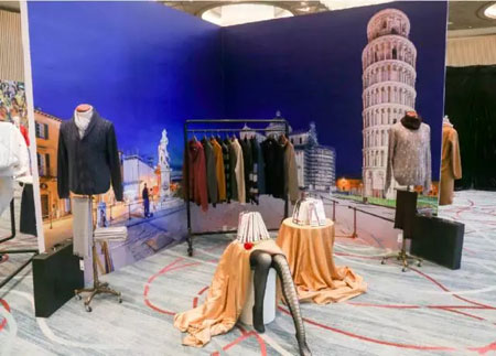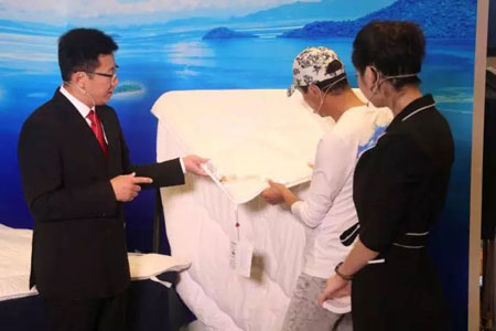 “恒源祥 羊羊羊”名不虚传,恒源祥作为全世界羊毛使用量最大的企业之一,以羊毛制品为核心,自2016年始前往欧洲、澳大利亚、泰国等地进行走访和洽谈,与全球优秀的供应商精诚合作。陈忠伟总经理带着吴刚老师一一参观了展区里的英国馆、意大利馆、澳大利亚馆、泰国馆等,详细介绍了恒源祥英国造羊绒大衣和美利奴羊毛围巾、恒源祥澳大利亚造羊驼毛床品、恒源祥意大利造丝袜、Fazeya泰国造乳胶枕等系列全球造产品的特性。