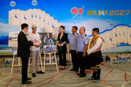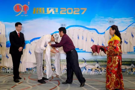 为表达敬意与谢意,在可可西里管理局书记布琼的带领下,可可西里守护者们为吴刚老师献上了洁白的哈达,共同高歌一曲,来自于青藏高原的天籁之音打动了每一个人。