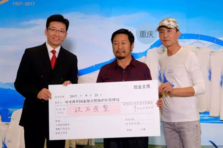 吴刚老师欣然接受可可西里国家级自然保护区管理局的聘书担“任可可西里公益形象大使”。吴老师表示,这是一份极大的荣誉,同时也是沉甸甸的责任,他感谢恒源祥的邀请,呼吁全社会共同保护可可西里高原野生动物及自然生态。