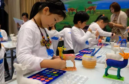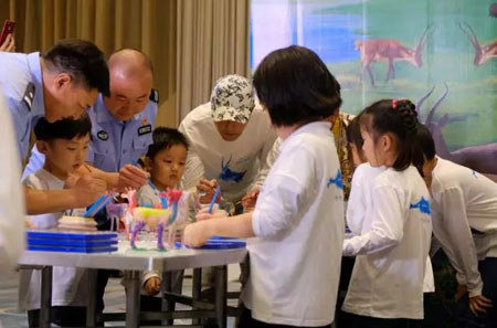 参与直播活动的嘉宾们与好小囡们一起拿起画笔,用心描绘着自己心中那只最美丽、最可爱的藏羚羊。