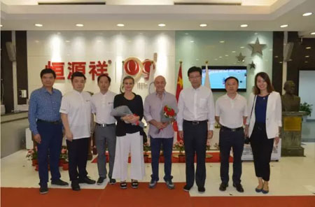 9月11日,国际轮滑联合会主席塞巴蒂诺•阿拉库,主席夫人——国际轮滑联合会秘书长劳拉•莫兰迪,国家体育总局社体中心一部主任、中国轮滑协会秘书长黄强,南京市体育局副局长费佳伟等一行到访恒源祥。