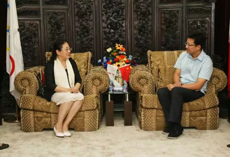 陈忠伟总经理首先向大家介绍了“恒爱行动”自2005年启动,开展12年来的历程和产生的社会效应,特别是 “百万家庭亲情一线牵”开展3年以来,其带动社会各阶层的参与的情况。黎荣副主席向陈总介绍了今年上海地区“恒爱行动”的开展计划,市妇联将发动上海的妇女之家,与恒源祥一起更好地开展“恒爱行动”,帮助到更多的贫困孤残儿童。双方还探讨了今年12月份将举行的上海地区援助新疆“恒爱毛衣”发车仪式,黎荣副主席邀请陈总和顾书记一同出席。