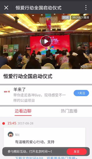活动中播放了由中国女排队员参与“恒爱行动”的精彩视频短片。