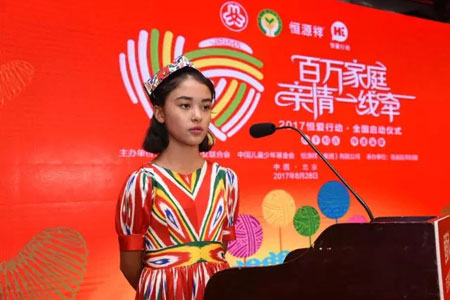 “恒爱行动——百万家庭亲情一线牵”于2014年9月在新疆乌鲁木齐启动,3年来,新疆地区已收到全国各地捐赠爱心毛衣已达151152件。“恒爱行动”开展至今,不仅温暖了全国各地、各民族家庭儿童,也走出国门温暖了南非、肯尼亚、乌拉圭、俄罗斯等国的需要帮助的儿童。