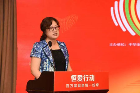 图:安徽省妇联副巡视员昂朝霞分享“恒爱行动”在安徽的开展经验