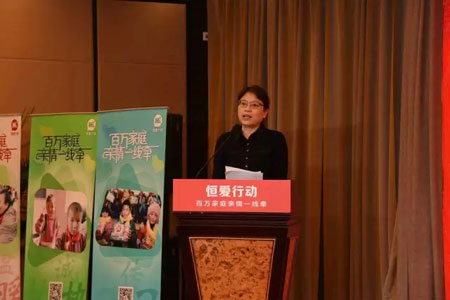图:新疆维吾尔自治区妇联党组成员、副主席常虹在发言中祝愿“恒爱行动”在未来的开展为天山南北,新疆长治久安作出新贡献