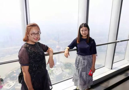 当日下午,学员们登上了上海中心大厦观光厅,欣赏浦江两岸的美景。上海中心大厦是世界第二高楼,值得一提的是,大厦工作人员工作服装均由彩羊服饰事业部量身定制提供。(文■彩羊产业;新闻图片■朗戈传播)